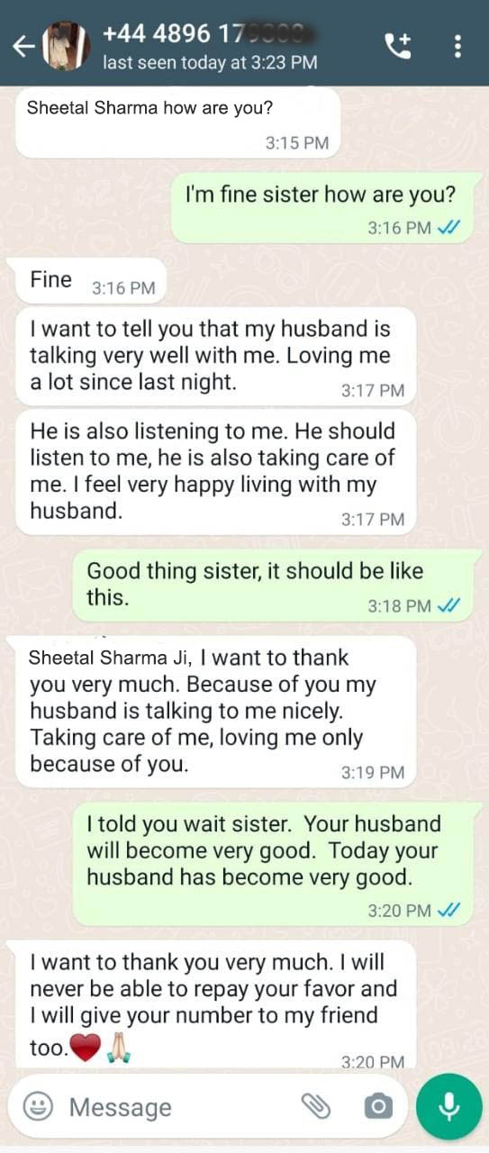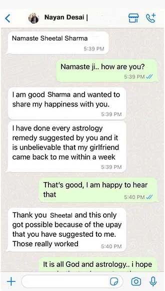 “My Boyfriend usually ignores me as Friend always try to bring differences among us. Thus I was fed up from this and discussed my problems with Lady Astrologer Sheetal Sharma. her astrological remedies make to get attention and love from Boyfriend now. ”.